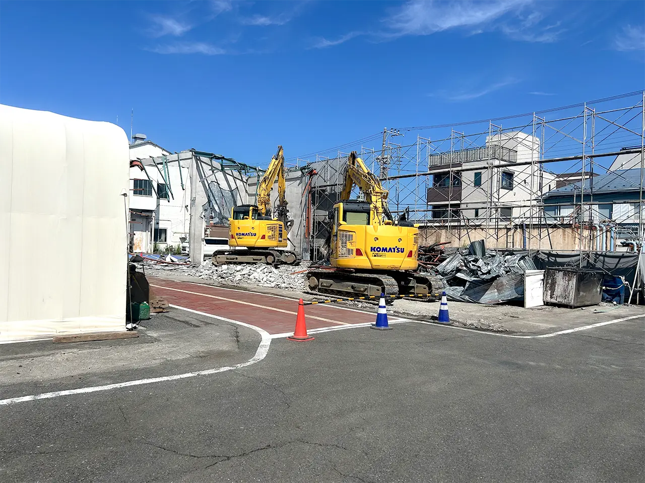 鉄筋コンクリート造・鉄骨造・木造など多様な構造物の解体工事を手がけ、戸建住宅から工場、ビル、商業施設まで幅広く対応。内装解体や部分撤去、改修工事に伴う限定的な解体も請け負い、再開発や建て替え計画に向けた解体ニーズに応えています。